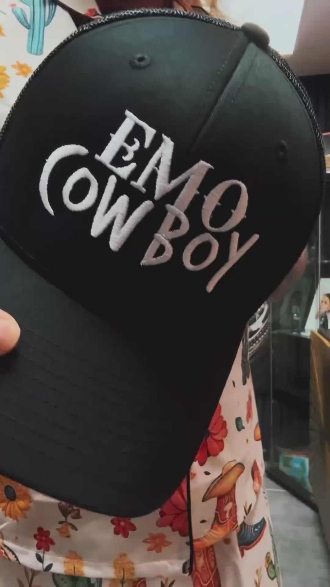 Giddy up and cry about it. The EMO COWBOY Trucker Hat brings outlaw energy with just the right amount of emotional damage. Perfect for sunny days, dark playlists, and dramatic exits.